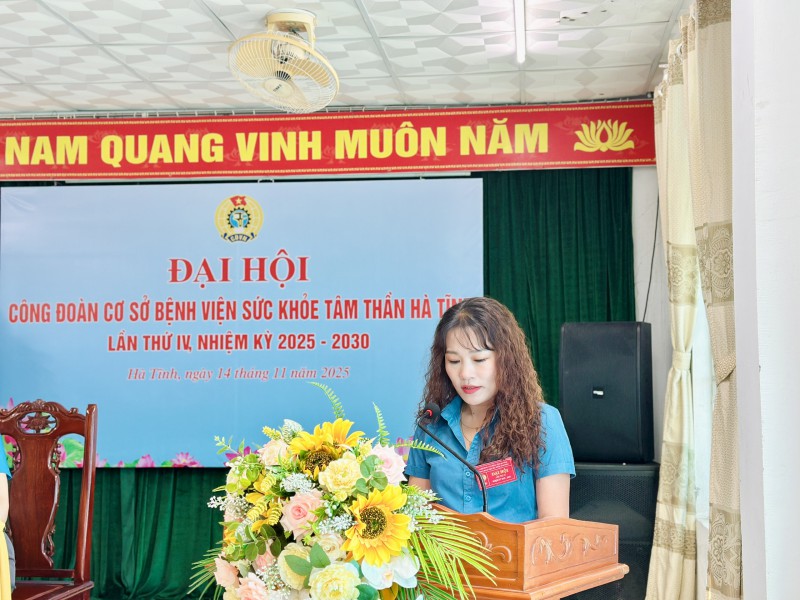 Với tinh thần “Đoàn kết - Dân chủ - Kỷ cương - Đổi mới - Phát triển”, chiều ngày 14/11, Công đoàn Cơ sở Bệnh viện Sức khỏe tâm thần Hà Tĩnh tổ chức Đại hội lần thứ IV, nhiệm kỳ 2025 - 2030.