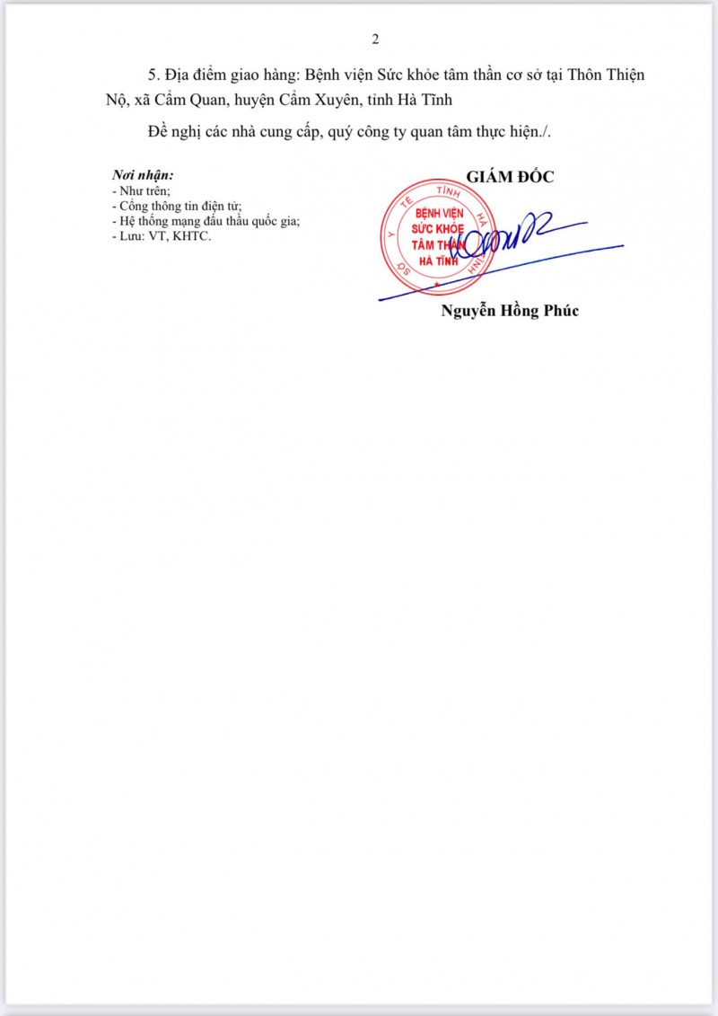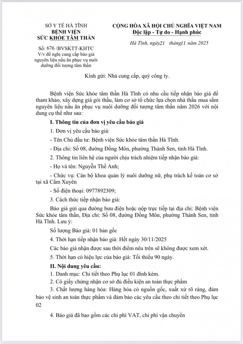 Đề nghị cung cấp báo giá nguyên liệu nấu ăn phục vụ nuôi dưỡng đối tượng tâm thần