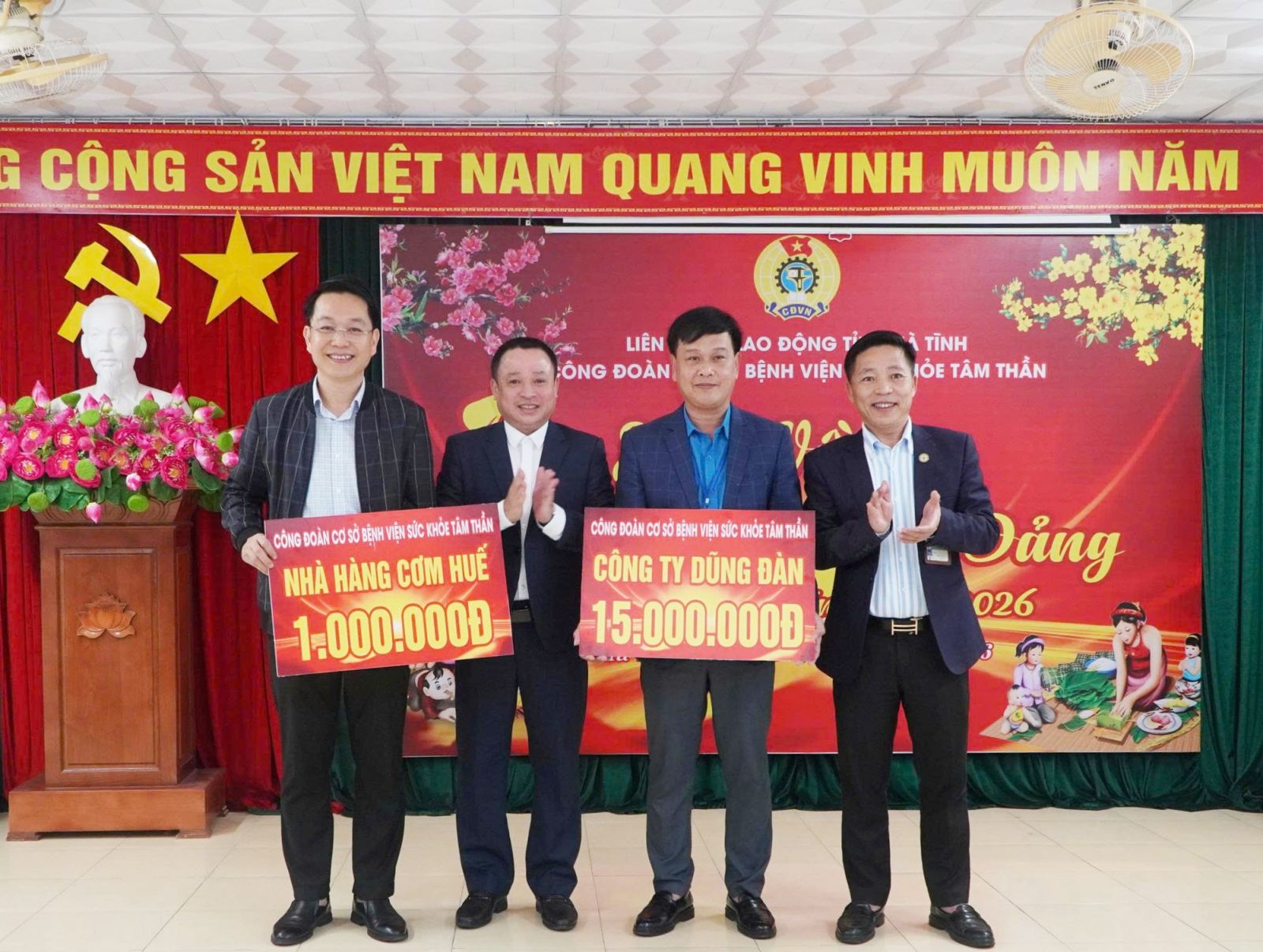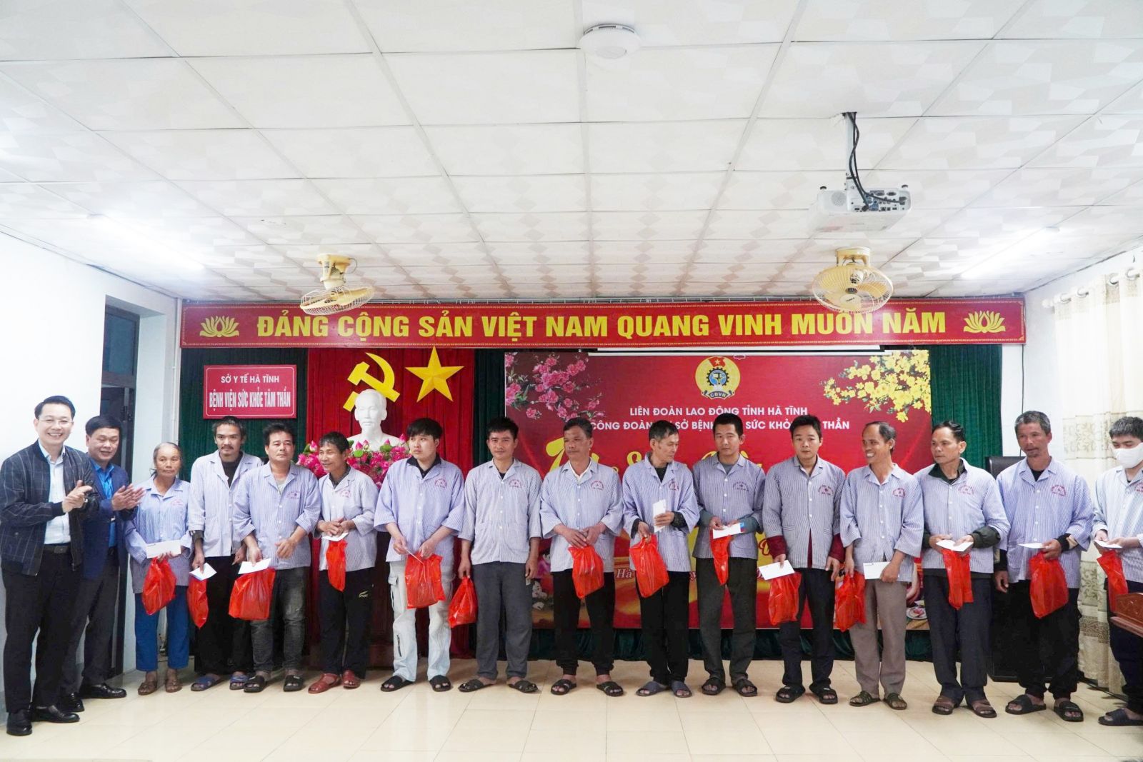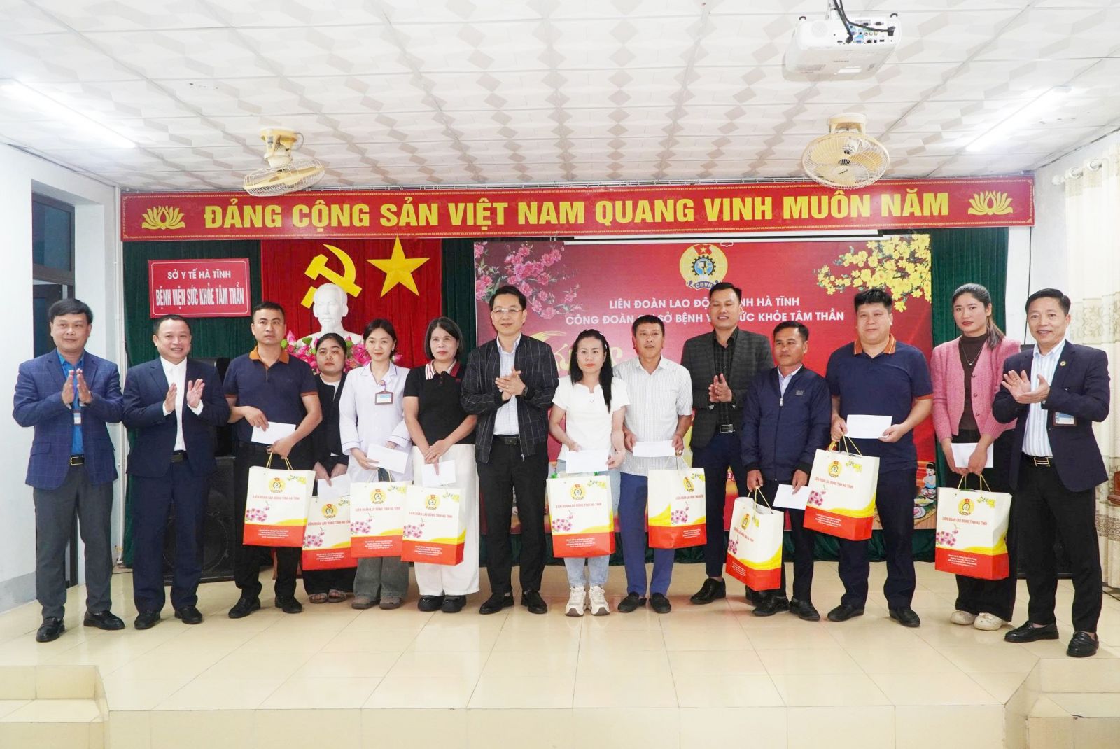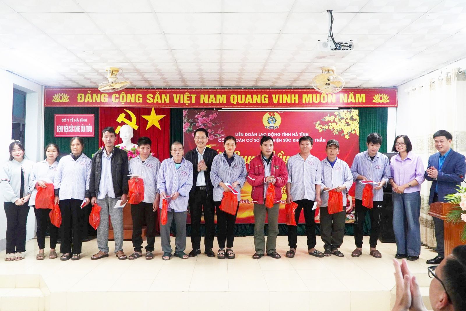 Tại chương trình, Liên đoàn Lao động tỉnh đã trao 12 suất quà cho đoàn viên công đoàn Bệnh viện Sức khỏe Tâm thần Hà Tĩnh có hoàn cảnh khó khăn. Bên cạnh đó, từ nguồn kinh phí công đoàn và sự hỗ trợ của các doanh nghiệp, nhà hảo tâm, mạnh thường quân trong và ngoài tỉnh, bệnh viện đã trao 95 suất quà, 300 bánh chưng cho bệnh nhân và người nhà bệnh nhân có hoàn cảnh khó khăn đang điều trị nội trú; đồng thời lắp đặt 1 ti vi tại cơ sở 2 của bệnh viện, với tổng giá trị hỗ trợ khoảng 70 triệu đồng.