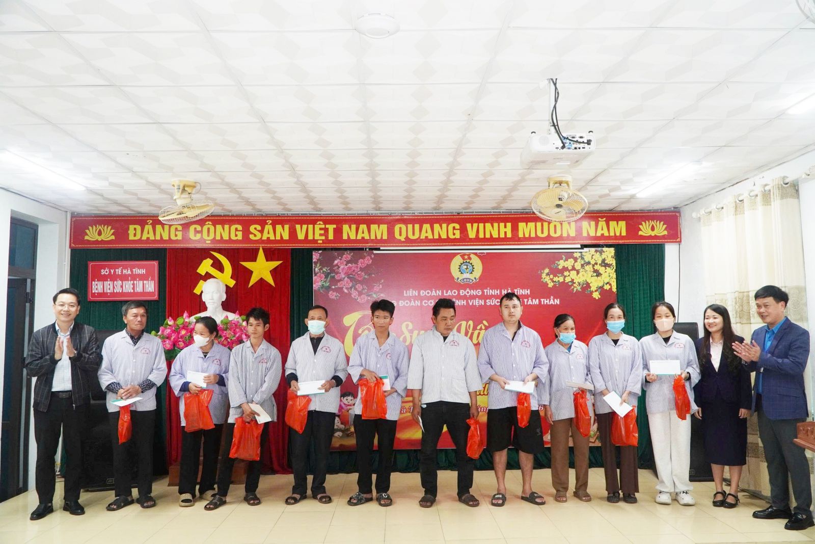 Chiều 6/2, Bệnh viện Sức khỏe Tâm thần Hà Tĩnh tổ chức chương trình "Tết sum vầy - Xuân ơn Đảng" nhằm gặp mặt, động viên và trao quà cho đoàn viên công đoàn, người lao động của bệnh viện và bệnh nhân có hoàn cảnh khó khăn đang điều trị tại đây.